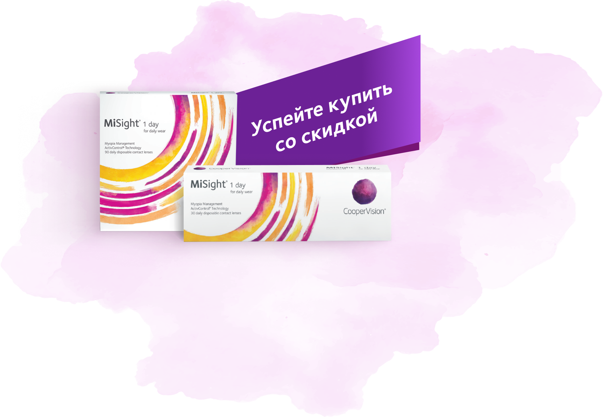 Приобретите 2 упаковки контактных линз MiSight® 1 day 90 линз по специальной цене и получите скидку 1000 рублей и 10 дней ношения в подарок*